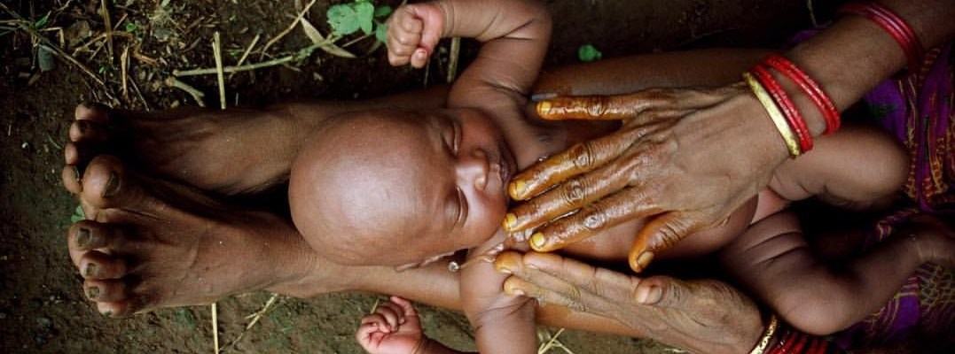Simplicity, love and the nurturing power of this precious moment. Jawani Purty massaging her beautiful baby Laxmi with haldi in a remote village Phulijar in Orissa, India. Jawani was alone at home when she birthed her baby, in a mud hut without access to any professional care. I was captivated by this image, it’s raw simplicity demonstrating baby massage as a regular part of every daily life for mum and baby. Jawani sits in dandasana, her legs together and outstretched, a traditional posture for Baby Massage commonly seen in India. A subtle reminder that Infant Massage requires no fancy gimmicks…